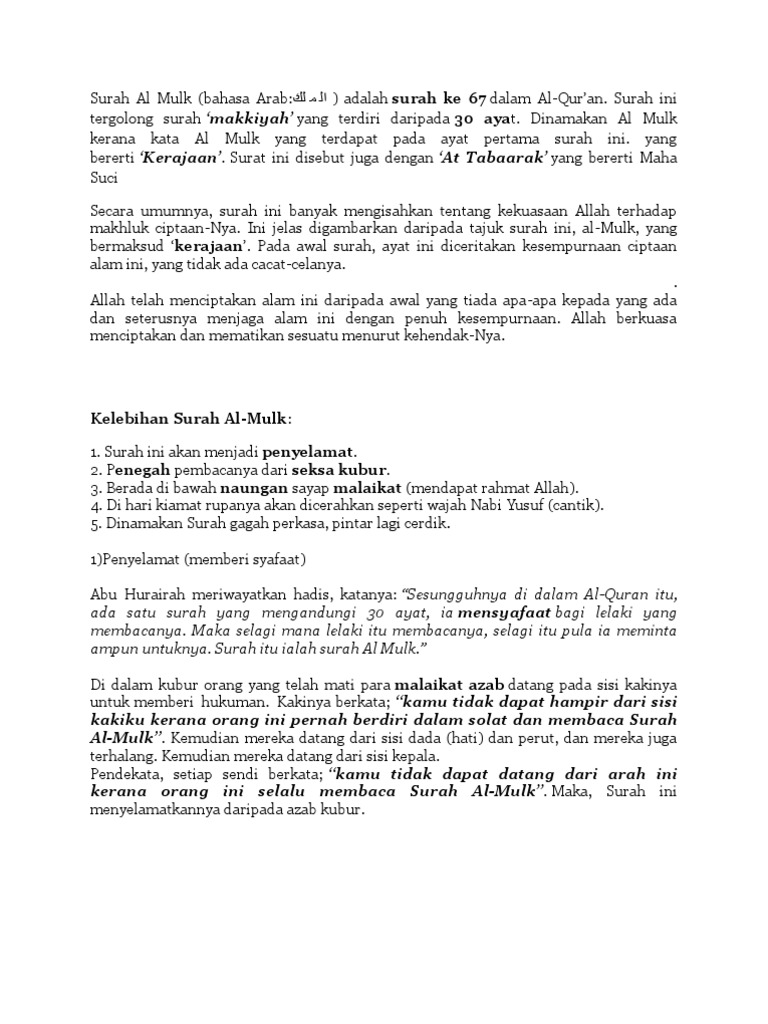 | Baca: Biro Keagamaan Kkbt Surah Al Mulk Adalah Surah Ke 67 Dalam Al Qur An Surah Ini Tergolong Surah Makkiyah Yang Terdiri Daripada 30 Ayat Dinamakan Al Mulk Kerana Kata Al Mulk Yang Terdapat Pada |